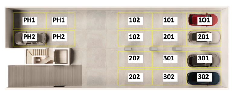 - Bodegas de departamentos: 101, 102, 201, 202, 301 y 302