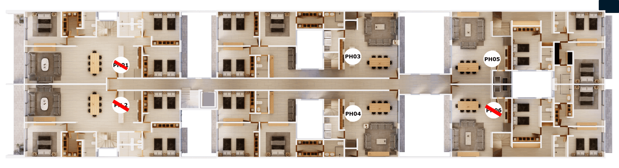 Cuenta con ocho departamentos: dos con terraza y seis con balcón, de los cuales dos tienen Roof Garden privado. Además cuenta con un Roof Garden de uso común, estacionamientos de uso exclusivo, elevador y caseta de vigilancia.